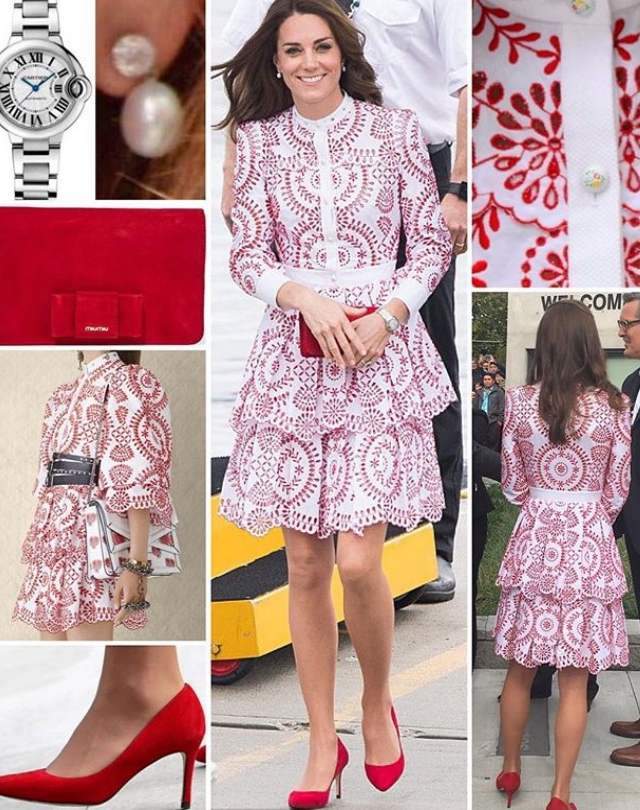 Ya ella creó su propio estilo, que la caracteriza y se la conoce en él, eso hace de una mujer, ser chic y elegante. Arribó a Canadá trajeada con un vestido ajustado con falda tubo por debajo de la rodilla en color azul klein, en claro homenaje a la bandera inglesa, que le quedabana de ensueño. . El modelo, firmado por Jenny Packham (una de sus diseñadoras favoritas), realmente era espectacular !