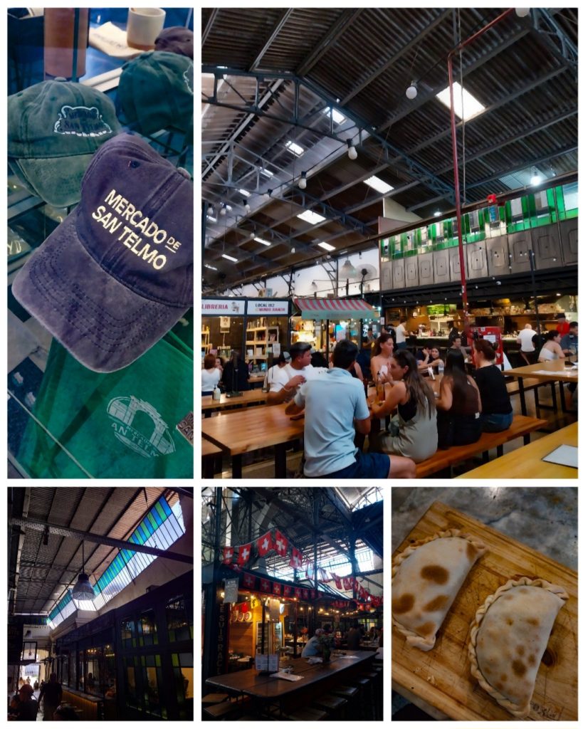 Siente uno que se encuentra en el pasado, mezclado con el presente, tiendecitas de todo tipo, objetos antiguos, juguetes también antiguos; vestuario de colección, comidas de los más variados lugares del mundo; olores diferentes de perfumes, gastronomía e inciensos; estar en el Mercado de San Telmo es toda una experiencia extrasensorial; una delicia para los amantes de lo antiguo y de las tradiciones.