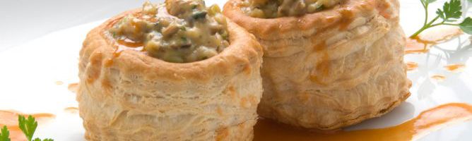 La delicia de una entrada genial… Vol au vent rellenos de pechuga de pollo y champiñones