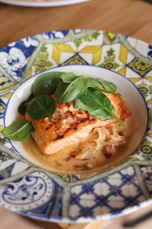 Salmón en crema de ajo, un sabor fuerte pero sabroso